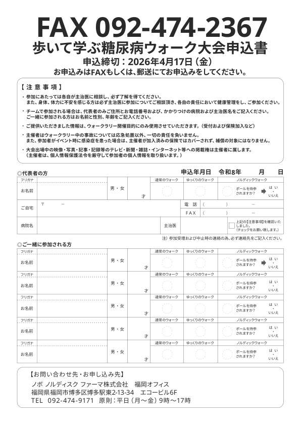 申込先及び問い合わせ先:walk@lcde-fukuoka.com